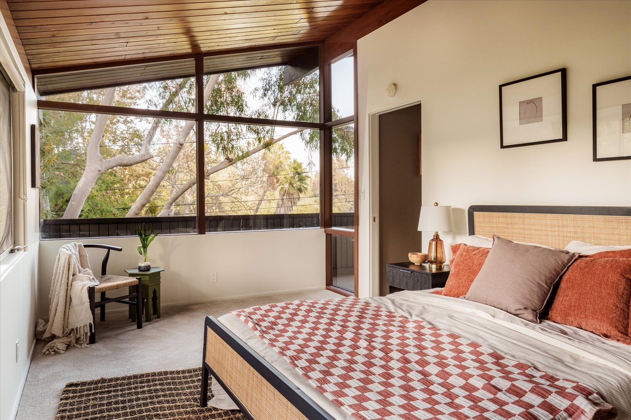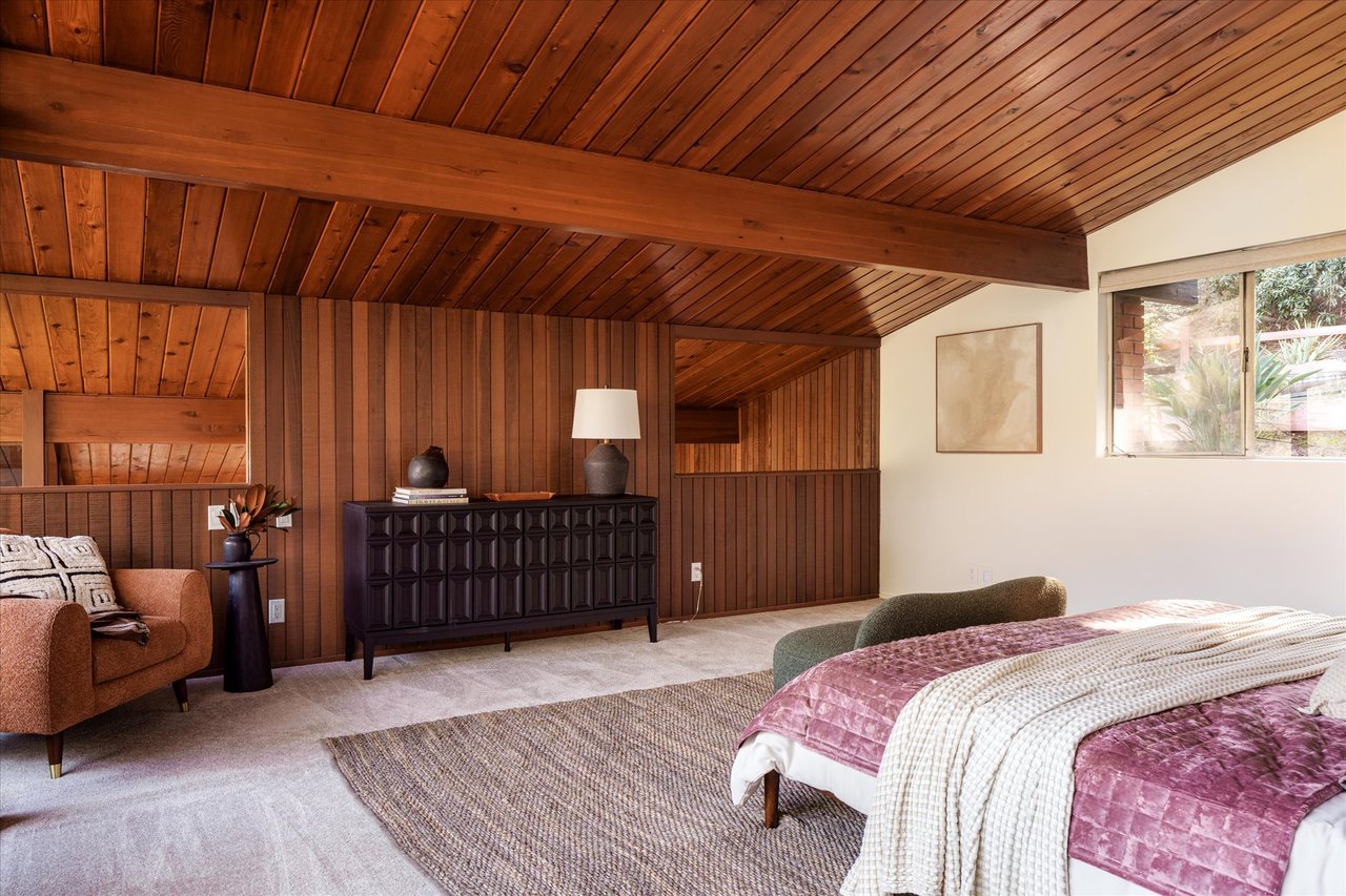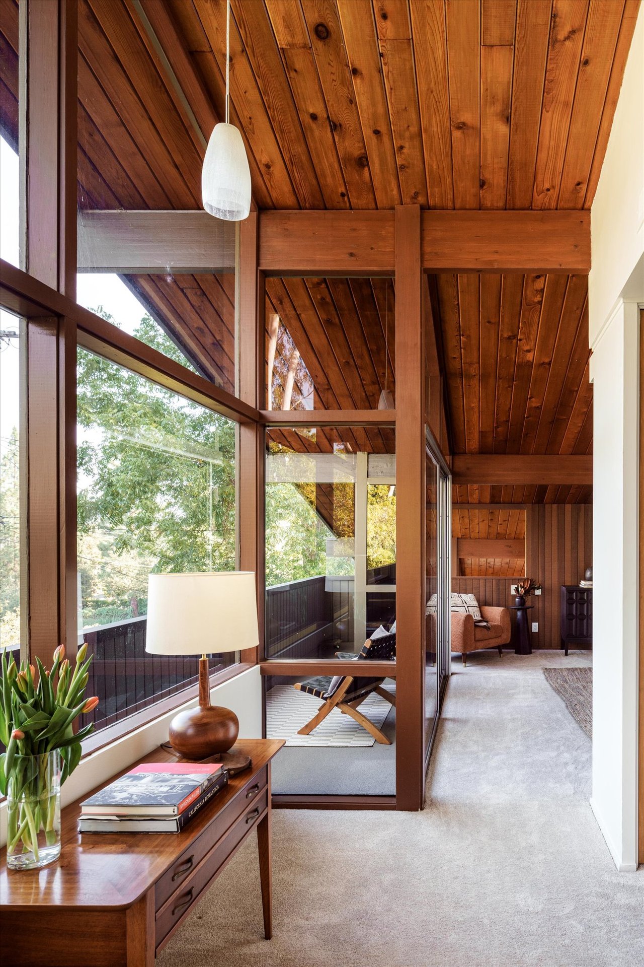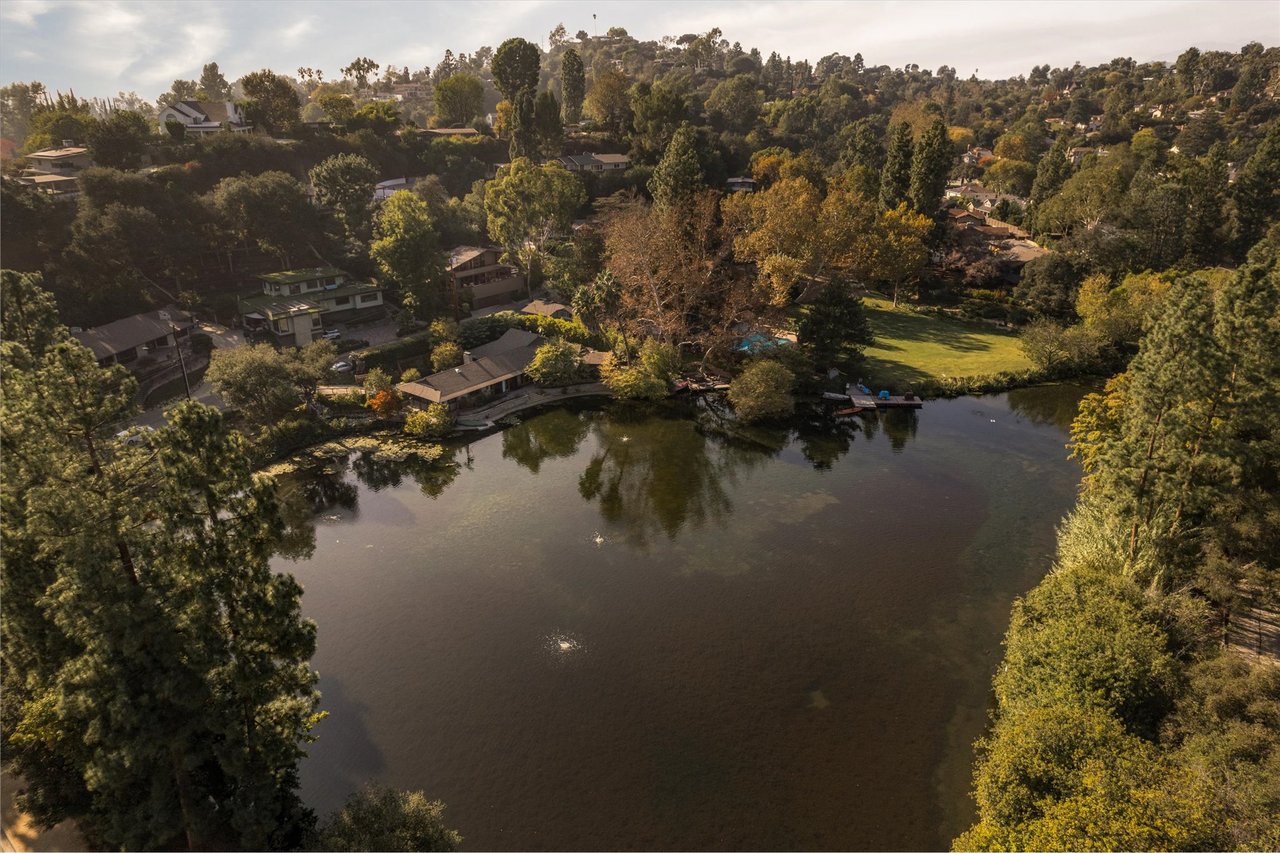 Set behind gates within an exclusive lakeside community, this striking post-and-beam mid-century modern residence offers rare privacy, serenity, and access to a private lake with a pool, park, and recreation area.