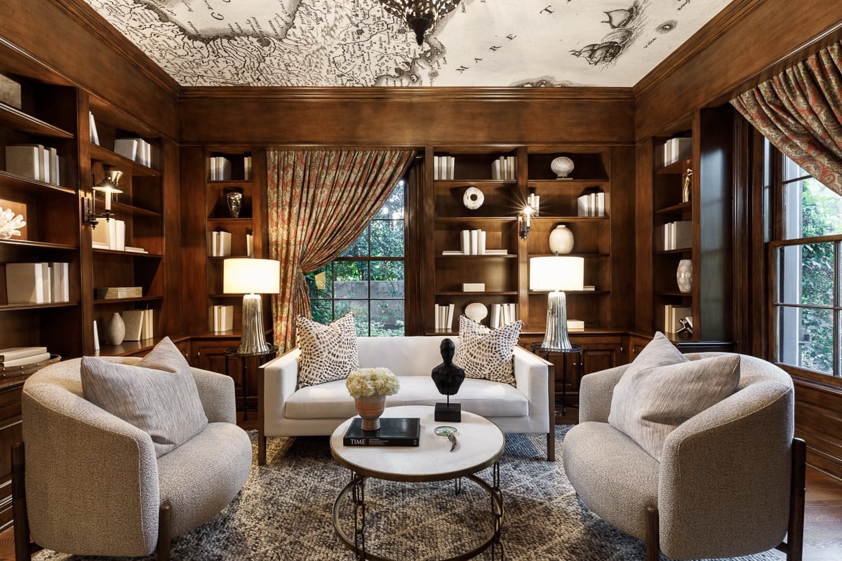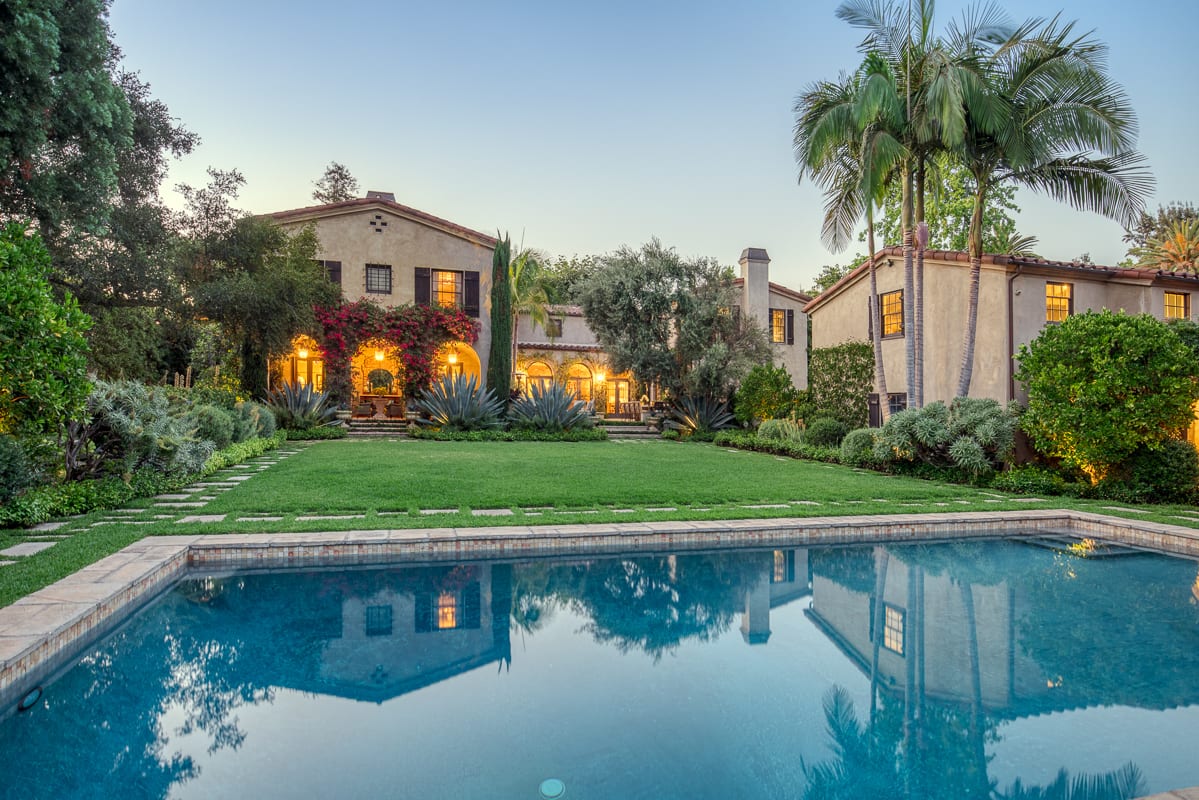 Located in the beautiful Huntington Library District, this Marston & Mayberry designed Italian Revival estate was originally built in 1928. Stunning old world architecture and craftsmanship have been married seamlessly throughout the years with tasteful updates and modern amenities added in a whole house renovation. The spectacular grounds feature meticulous landscape design starting with the entry courtyard centered on a gorgeous limestone fountain imported from France. The formal entryway with dramatic sconces and hidden closets leads into a gracious formal living room with a stone fireplace flanked by french doors leading to a covered seating area lushly covered in bougainvillea. A jewel box library is lined with rich walnut bookshelves and an old world map of Italy covering the ceiling. The formal Dining Room has beautiful arched built-ins and connects directly to a large butler's pantry. The spacious kitchen is the heart of the home with an informal dining area, a marble-topped island, limestone countertops, an imported Limestone hood and Wolf range/oven, a subzero refrigerator and a walk-in pantry. Downstairs from the kitchen there is a 2400 bottle wine cellar. The family room is located directly off of the kitchen. The downstairs rooms are connected by a gallery with four sets of Palladian doors that open to the dramatic exterior courtyard. Upstairs, the main bedroom enjoys a separate seating area, a large walk-in closet and a beautiful main bathroom with a freestanding tub and marble topped vanities. There are four additional bedrooms on the second floor, each with their own bathrooms (one bedroom is currently used as an office). An additional office and the laundry room complete the second floor. Heading outside, the center courtyard features a circular fountain and large seating and dining areas and a built-in BBQ. The lush grassy lawn beckons to the gorgeous pool overlooked by an outdoor fireplace. The charming guest house is located just off of the pool area. With an outdoor dining area, a separate outdoor seating area, a living room/bedroom with vaulted ceilings, a kitchenette and a bathroom, this space can be used as both a pool house and a guest house. There is a large 900 square foot gym and half bath over the three car garage. This spectacular home and its incredible grounds are a historic treasure and quintessentially Pasadena.