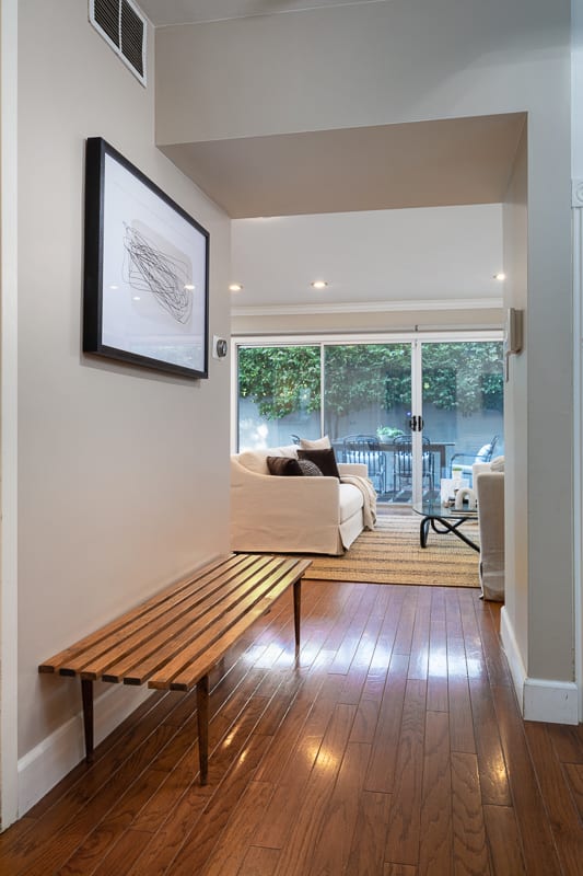 This sophisticated end-unit townhome is located within a lovely French Regency style complex with only 8 units. This condominium has been extensively updated throughout, with an eye on classical timeless design. The clean-lined kitchen features Bosch appliances, quartz countertops & excellent storage. The large living room is centered on a handsome fireplace surrounded by built-in bookshelves & opens out to a fully enclosed patio which doubles as an outdoor dining room. There is a newer automated retractable awning. The main level features hardwood floors & a powder room, ample storage & a wet bar. The 2nd floor was remodeled in 2018 & has 2 bedrooms, both en-suite. The main bedroom boasts a large walk-in closet & a beautiful bathroom. The laundry is conveniently located on the 2nd floor. Unit 5 enjoys 2 parking spaces, one which is directly outside the kitchen door for easy & direct access. There is an additional storage closet in the carport, a security system & newer heat & air systems. Centrally located & close to parks, the Arroyo trails & fantastic shopping & dining in Old Town Pasadena, this condominium boasts all of the conveniences & amenities needed for gracious living.